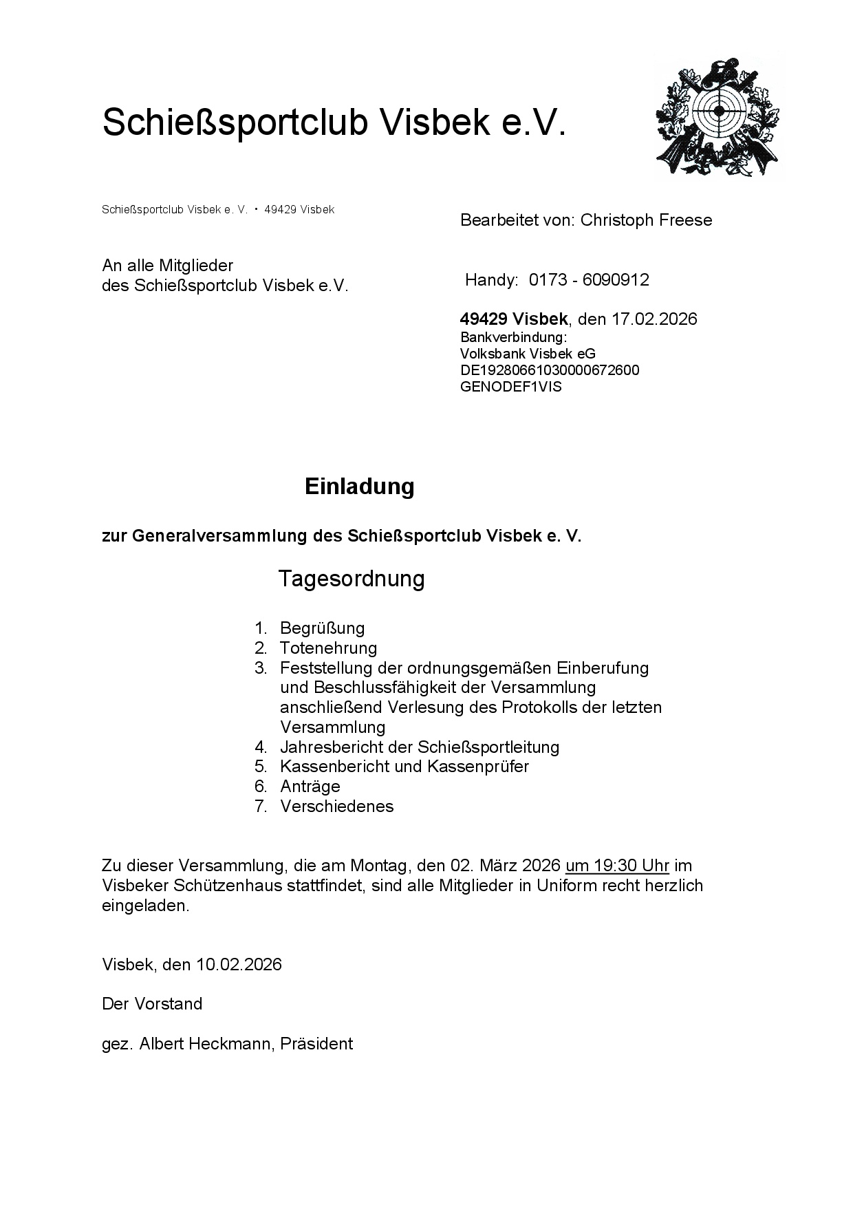 Generalversammlung des Schießsportclub Visbek e. V.