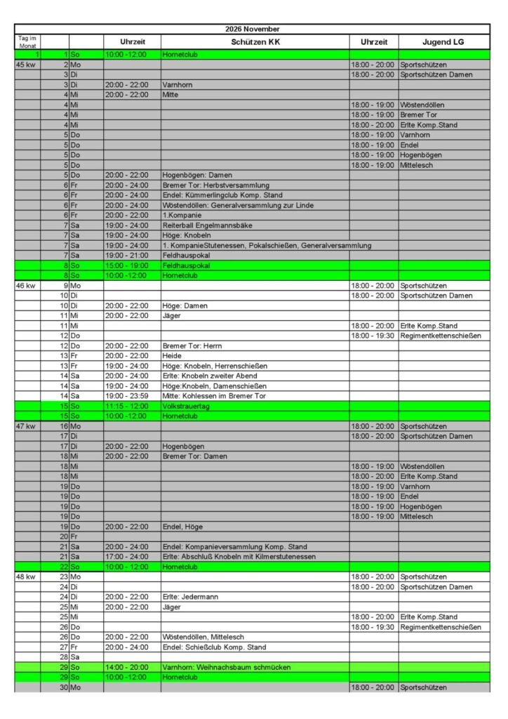 Dienstplan Schießwarte
