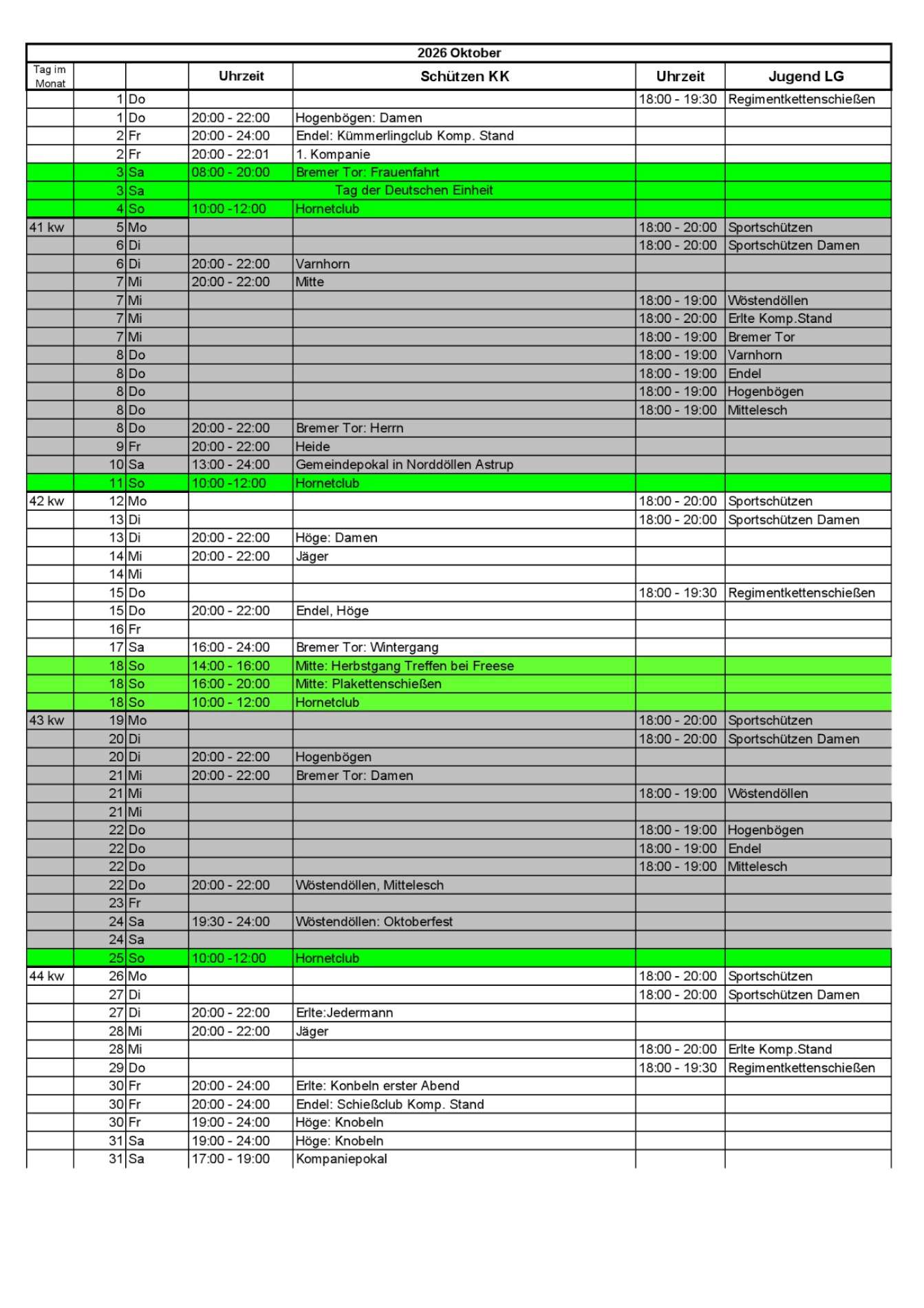 Dienstplan Schießwarte